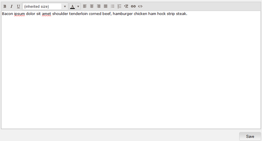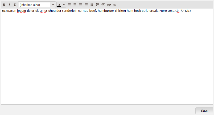 <p>Bacon ipsum dolor sit amet shoulder tenderloin corned beef, hamburger chicken ham hock strip steak. More text.<br /></p>