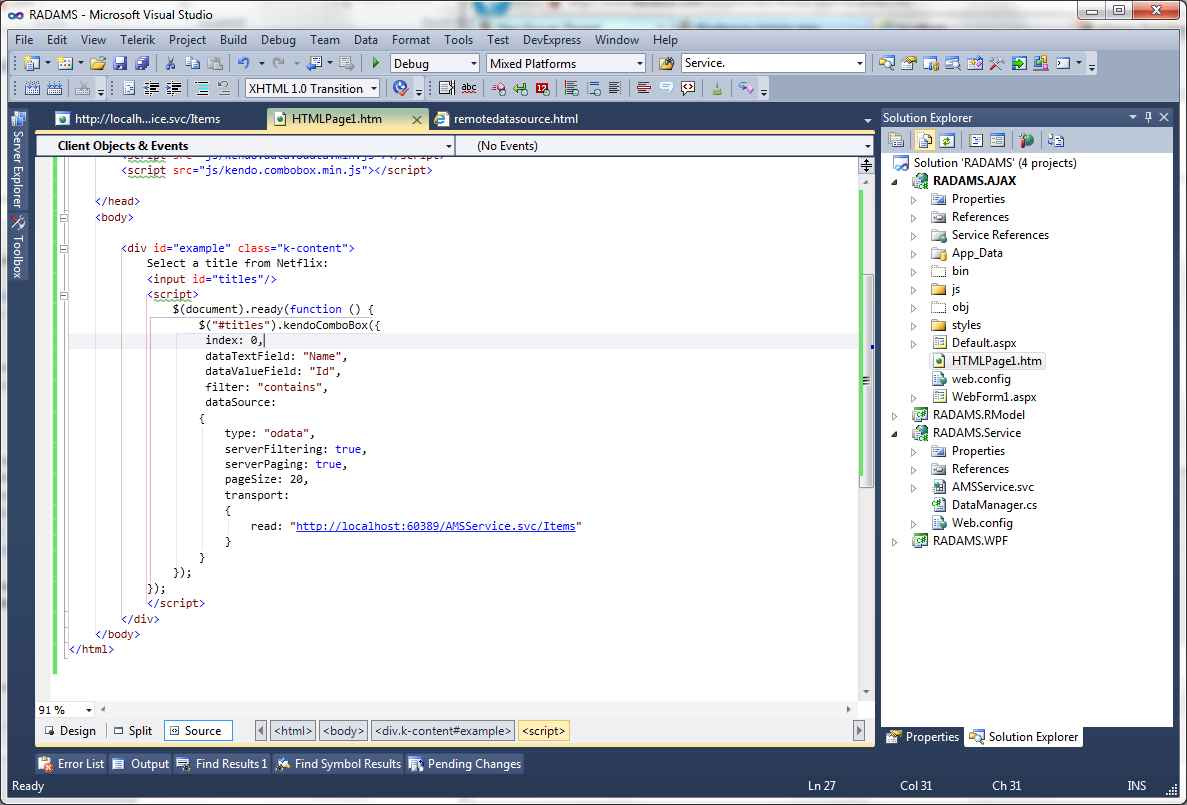 $("#Server").kendoComboBox({ dataTextField: "CompanyName", dataValueField: "SupplierID", dataSource: { type: "odata", serverFiltering: true, transport: { } }, change: function () { }}).data("kendoComboBox");OData Service Response:
