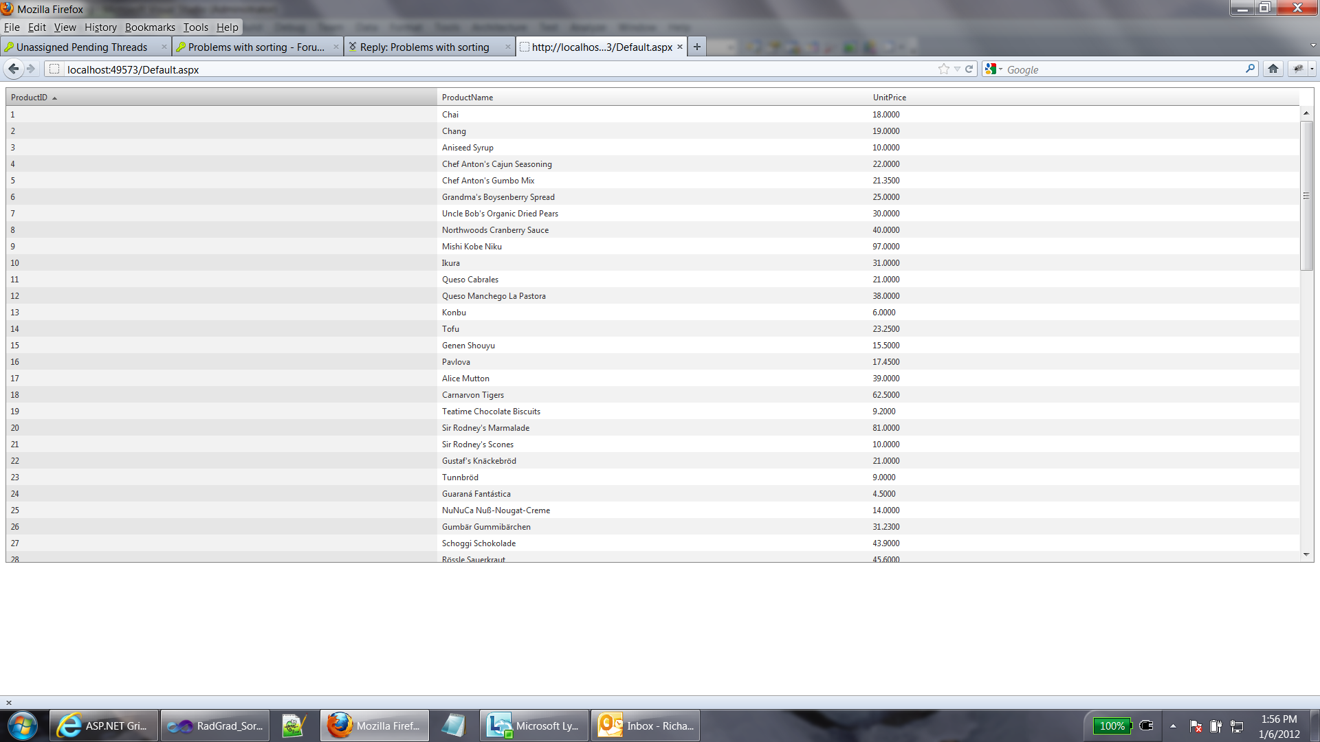From the documentation this should allow simple sorting to work. I only have 2 columns in the grid which are auto-generated. My problem is that nothing appears to happen when I click the column header to sort the items. To I need to add anything else just to implement simple ascending/descending sorting?