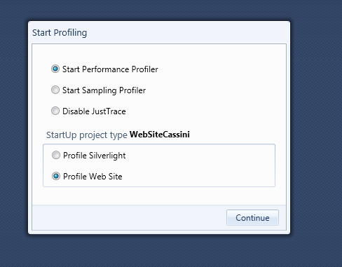 Performance profiler on Windows 7 Enterprise SP1 32-bit, using WebSiteCassini .
