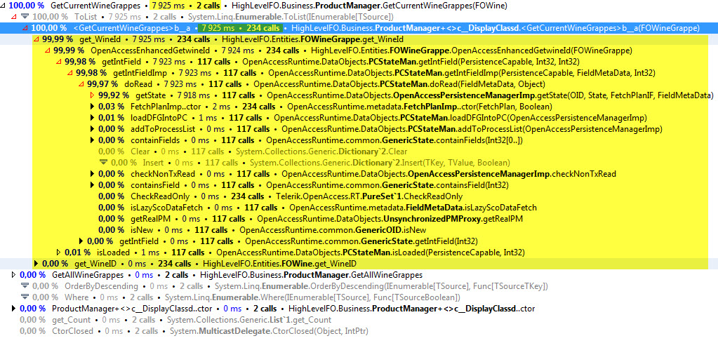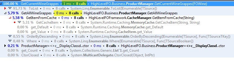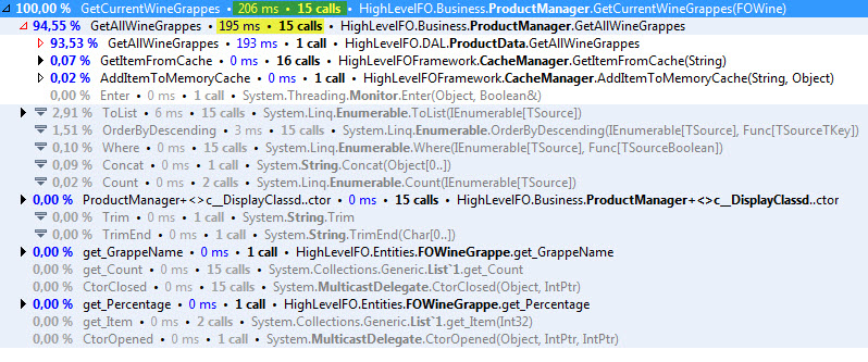 Now when i profile the application, on the first access to GetCurrentWineGrappes takes just 216ms.