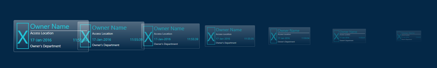 So I'm trying to use the RadCarousel to only present data, without user interaction. I have real-time events, which are represented as cards in the carousel control. As a new event pops, I want it to slide in and take the topmost place in the carousel, and for all the other cards to move aside (with animation of course). The maximum items I present simultaneously (ItemsPerPage) is 7. Please see attached screen shot.