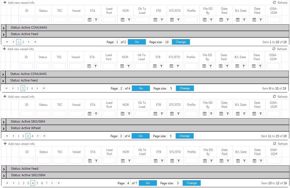 int rowCount;radGridVessel.MasterTableView.AllowPaging = false;radGridVessel.Rebind();rowCount = radGridVessel.MasterTableView.Items.Count;//get row countradGridVessel.PageSize = (rowCount / 2) + 1; //set for 2 pagesradGridVessel.MasterTableView.AllowPaging = true;radGridVessel.Rebind();The code presents an issue because on load, the first page will be correct proportionately, but when the next page button is pressed, the code is executed again, essentially halving the page size each time the button is pressed. How can I keep this to persist across changing pages?