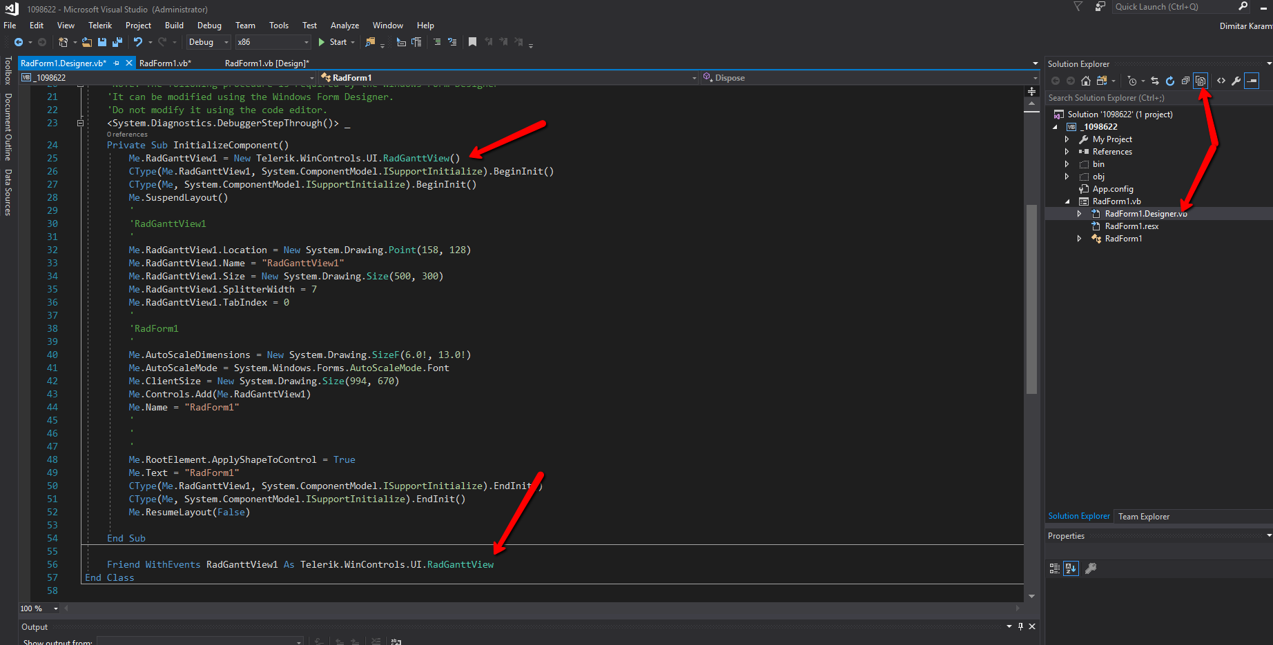 Open the designer file and replace the default RadGantView with the custom one. The attached image shows how you can do that.