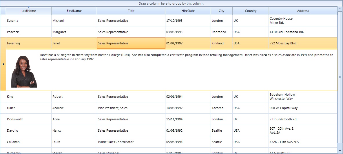 You can see a full demo and code example of the Row Details Grid by going to the Demos that are installed on your computer with the Telerik Controls.