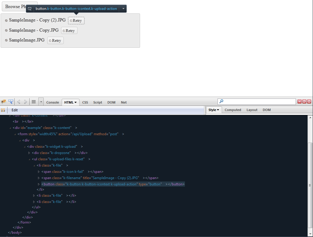 I am using Kendo UI file upload control in async mode and AutoUpload set to false.