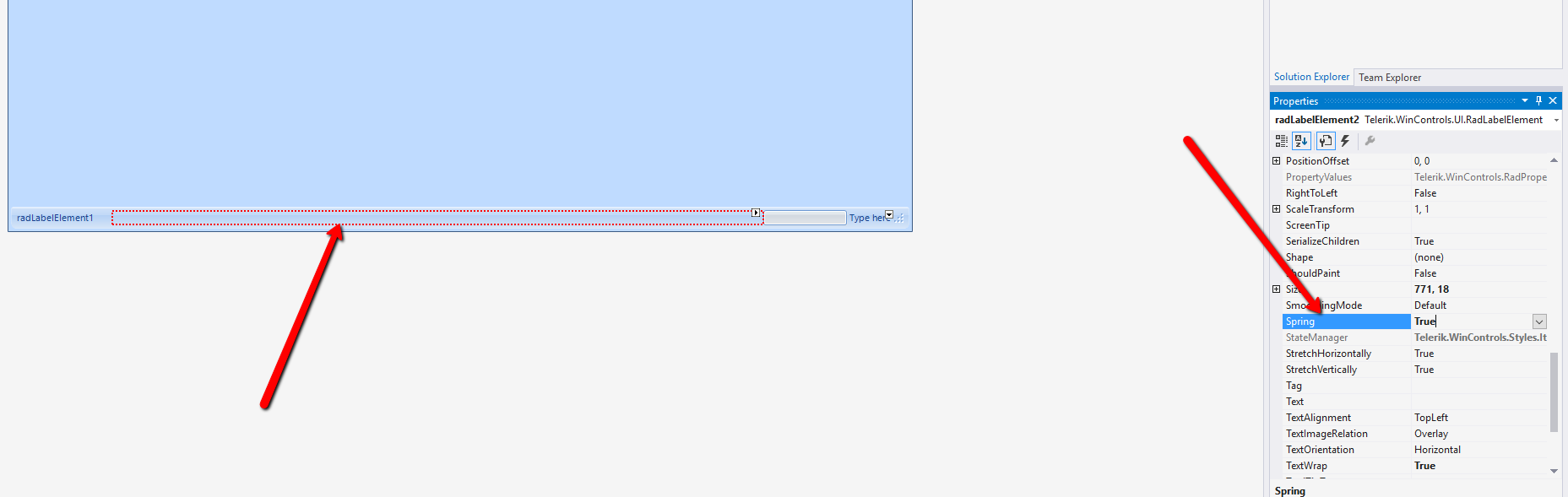 private void RadForm1_SizeChanged(object sender, EventArgs e){ int totalWidth = radStatusStrip1.Width; int elementsWidth = 0; foreach (RadItem item in radStatusStrip1.Items) { elementsWidth += item.Size.Width; } int emptySpace = totalWidth - elementsWidth; if (emptySpace > 0) { radStatusStrip1.Items[radStatusStrip1.Items.Count - 1].Margin = new System.Windows.Forms.Padding(emptySpace-25, 0, 0, 0);// 25 pixels for the size grip }}Please let me know if there is something else I can help you with.