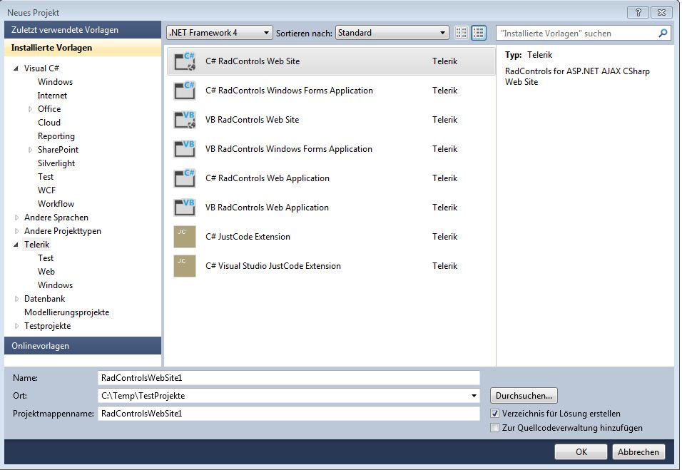 Telerik WebUI VSExtensions 2012.3.1212.0