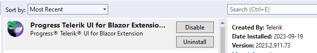 I am trying to create a new project using Telerik C# Blazor Application template in Visual Studio 2022. I am able to go through the template steps however on finish no project is created. The message bar at the bottom of visual studio says it was successful. I have Telerik UI for Blazor Extension installed and enabled.