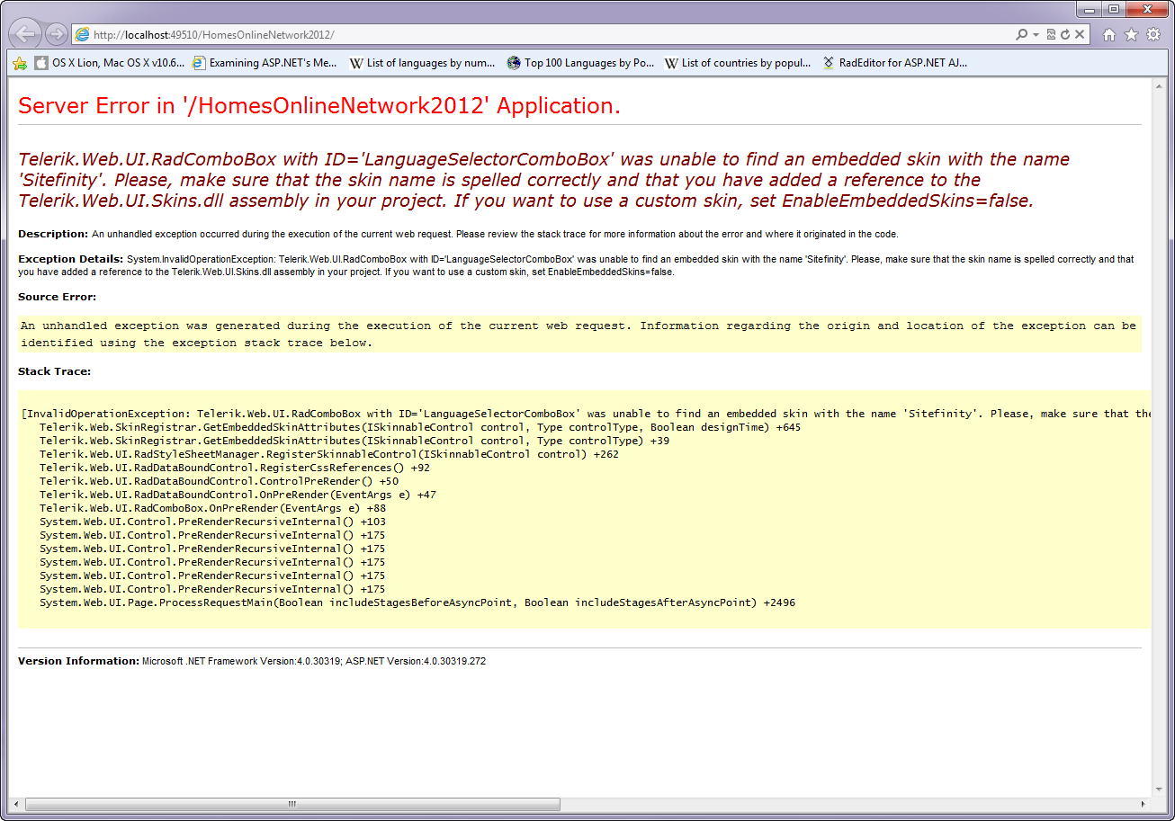 I now have two projects that were previously using the Sitefinity skin and now everything is blowing up when it tries to display using that skin. I haven't tried any other skins because I'm hopping mad that my producitivity has just been shot in the foot.