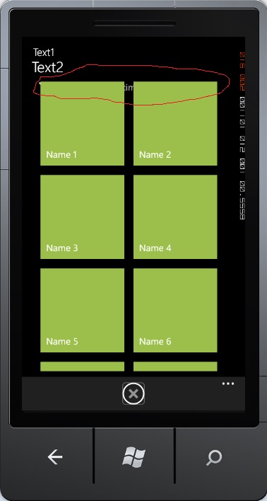 <phone:PhoneApplicationPage x:Class="RadControlsWindowsPhoneApp1.MainPage" xmlns:phone="clr-namespace:Microsoft.Phone.Controls;assembly=Microsoft.Phone" xmlns:shell="clr-namespace:Microsoft.Phone.Shell;assembly=Microsoft.Phone" xmlns:controls="clr-namespace:Microsoft.Phone.Controls;assembly=Microsoft.Phone.Controls" xmlns:converters="clr-namespace:Converters" xmlns:telerikPrimitives="clr-namespace:Telerik.Windows.Controls;assembly=Telerik.Windows.Controls.Primitives" xmlns:telerikListBox="clr-namespace:Telerik.Windows.Controls.DataBoundListBox;assembly=Telerik.Windows.Controls.Primitives" mc:Ignorable="d" d:DesignWidth="480" d:DesignHeight="800" FontFamily="{StaticResource PhoneFontFamilyNormal}" FontSize="{StaticResource PhoneFontSizeNormal}" Foreground="{StaticResource PhoneForegroundBrush}" SupportedOrientations="Portrait" Orientation="Portrait" shell:SystemTray.IsVisible="False" Loaded="PhoneApplicationPage_Loaded_1" > <Grid x:Name="LayoutRoot" Background="Transparent"> <Grid.Resources> <DataTemplate x:Key="DataBoundListBoxItemTemplate"> <telerikPrimitives:RadHubTile Width="180" Height="180" Margin="0,0,20,20" Title="{Binding Name}" Background="#FF9AC048"> </telerikPrimitives:RadHubTile> </DataTemplate> </Grid.Resources> <Grid.RowDefinitions> <RowDefinition Height="Auto"/> <RowDefinition Height="*"/> <RowDefinition Height="Auto"/> </Grid.RowDefinitions> <StackPanel Grid.Row="0" Margin="12,17,0,0"> <TextBlock Text="Text1" Style="{StaticResource PhoneTextTitle3Style}"></TextBlock> <TextBlock Text="Text2" Margin="9,-7,0,0" Style="{StaticResource PhoneTextTitle2Style}" /> </StackPanel> <Grid x:Name="ContentPanel" Grid.Row="1" Margin="12,12,12,12"> <telerikPrimitives:RadDataBoundListBox Name="listBox" EmptyContent="" ItemsSource="{Binding Path=Model, Mode=TwoWay}" IsPullToRefreshEnabled="True" ItemTemplate="{StaticResource DataBoundListBoxItemTemplate}"> <telerikPrimitives:RadDataBoundListBox.VirtualizationStrategyDefinition> <telerikPrimitives:WrapVirtualizationStrategyDefinition Orientation="Horizontal" WrapLineAlignment="Center" /> </telerikPrimitives:RadDataBoundListBox.VirtualizationStrategyDefinition> </telerikPrimitives:RadDataBoundListBox> </Grid> <telerikPrimitives:RadBusyIndicator Grid.Row="1" AnimationStyle="AnimationStyle9" Foreground="#FF9AC048"> <telerikPrimitives:RadBusyIndicator.IsRunning> <Binding ElementName="listBox" Path="ItemsSource"> <Binding.Converter> <converters:NullToTrueConverter></converters:NullToTrueConverter> </Binding.Converter> </Binding> </telerikPrimitives:RadBusyIndicator.IsRunning> </telerikPrimitives:RadBusyIndicator> </Grid> <phone:PhoneApplicationPage.ApplicationBar> <shell:ApplicationBar IsVisible="True" IsMenuEnabled="True"> <shell:ApplicationBarIconButton Click="ApplicationBarIconButton_Click_1" IconUri="/Images/appbar_button1.png" Text="Show Model"/> </shell:ApplicationBar> </phone:PhoneApplicationPage.ApplicationBar></phone:PhoneApplicationPage>Code Behind.