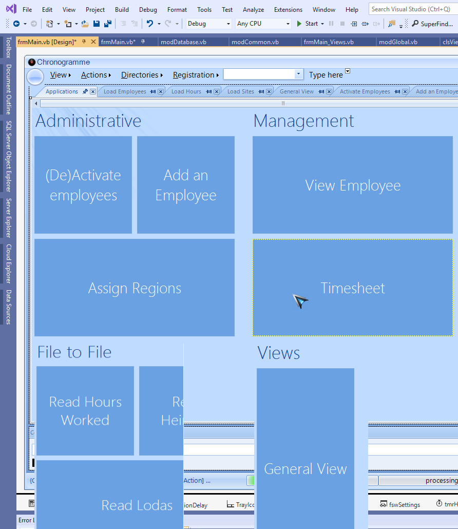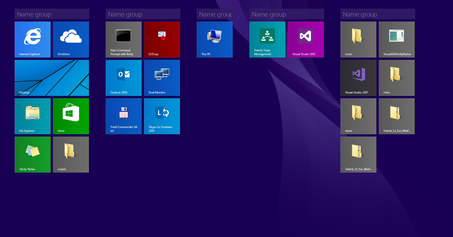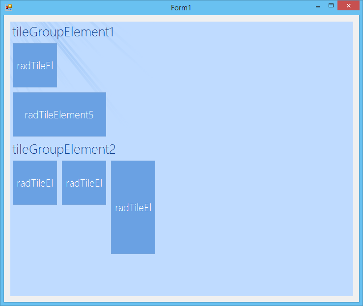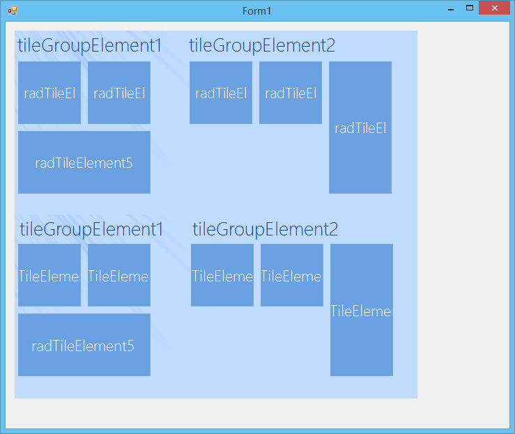 this.radPanorama1.PanoramaElement.GroupLayout.Orientation = Orientation.Vertical;The Orientation property will allow you to have either Horizontal or Vertical layout. Currently, it is not possible to have groups arranged horizontally and vertically at the same time. A possible solution to achieve this is to use two separate RadPanorama controls. I am attaching two screenshots showing the groups oriented vertically and also a grid-like layout using two separate controls.