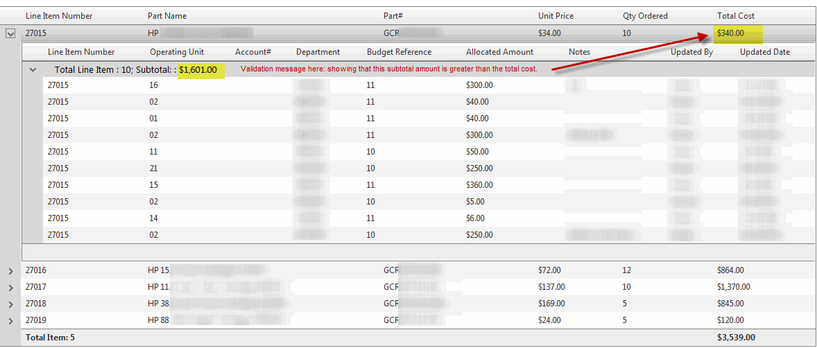 I would like to know how to put validation in the master detail table comparing cost between the master total cost and the detail subtotal cost. Please see the attached image. and also when I add new record or update the existing record then it will also show this message if the master total cost is less than the detail subtotal cost too.