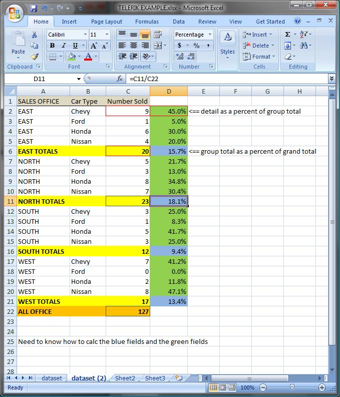 I am trying to figure out how to calculate pergentages by subtotal. Using Product Sales Per Period Demo as an example...