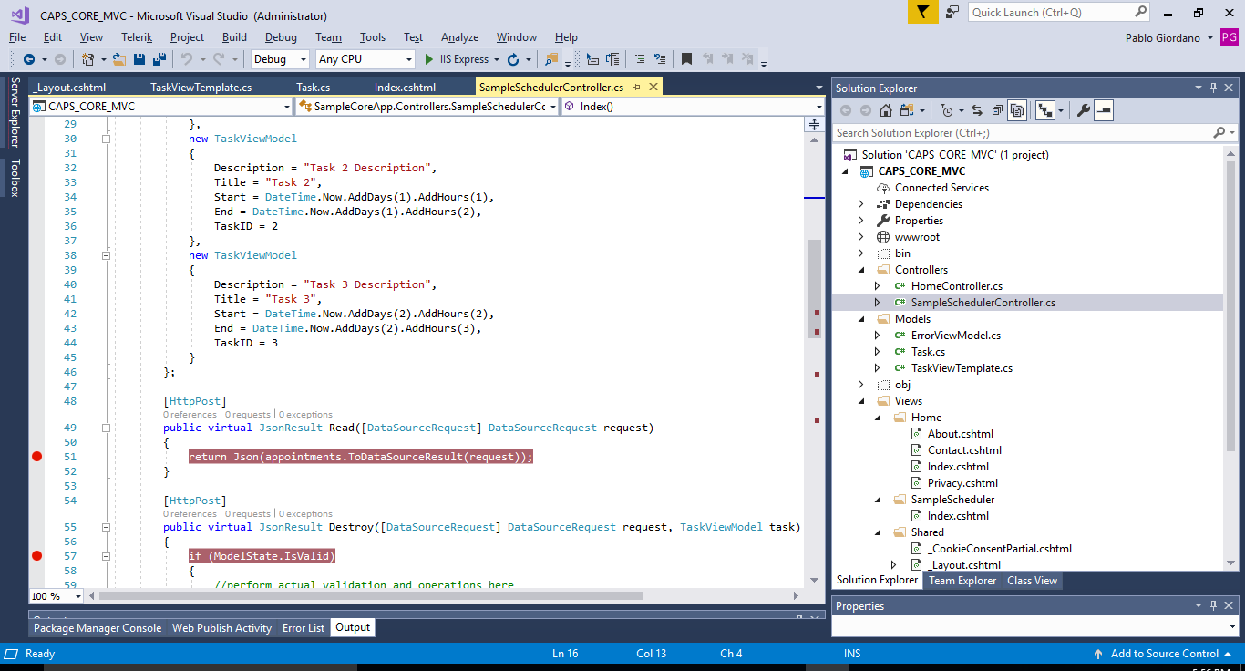 I'm new to Telerik and I'm trying to run your Scheduler demo for Core in my Visual Studio 2017. I installed Telerik.UI.for.AspNet.Core(2019.1.115) in my VS 2016.