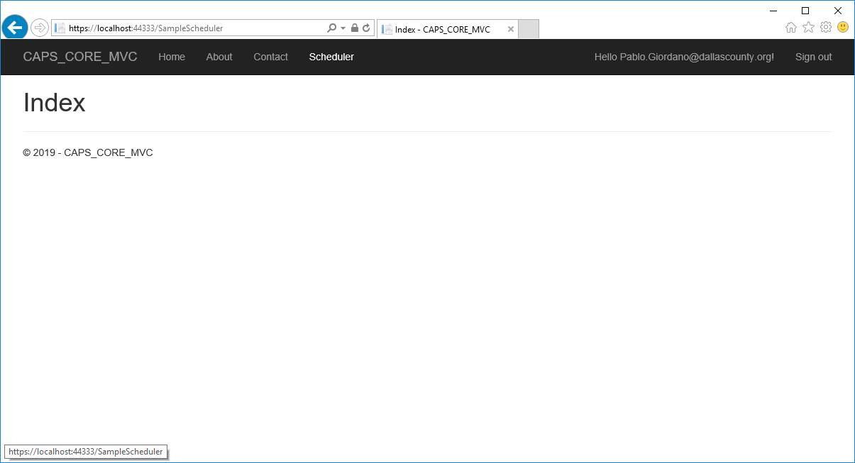 I was able to create the Core MVC project, compile it and run it but the Scheduler doesn't show. The page shows blank. I debug it and it looks like it's working ok and it's loading the dummy data. The Scheduler is launched when the "Scheduler" tab is selected in the _Layout.cshtml.