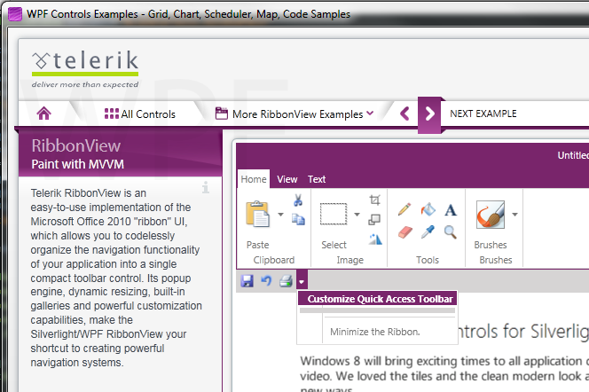 If you move the quick access bar below the ribbon the text "Show below the ribbon." becomes blank.