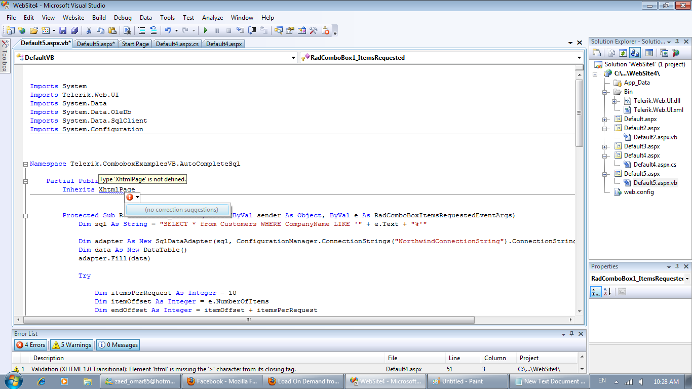 The type or namespace name 'QuickStart' does not exist in the namespace 'Telerik' (are you missing an assembly reference?)