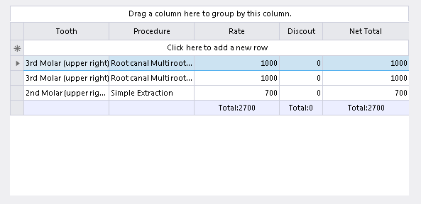 GridViewSummaryItem summaryItem = new GridViewSummaryItem(); summaryItem.Name = "rate"; summaryItem.Aggregate = GridAggregateFunction.Sum; summaryItem.FormatString = "Total:{0}"; GridViewSummaryRowItem summaryRowItem = new GridViewSummaryRowItem(); summaryRowItem.Add(summaryItem); summaryItem = new GridViewSummaryItem(); summaryItem.Name = "Discount"; summaryItem.Aggregate = GridAggregateFunction.Sum; summaryItem.FormatString = "Total:{0}"; summaryRowItem.Add(summaryItem); summaryItem = new GridViewSummaryItem(); summaryItem.Name = "NetTotal"; summaryItem.Aggregate = GridAggregateFunction.Sum; summaryItem.FormatString = "Total:{0}"; summaryRowItem.Add(summaryItem); this.dgv.SummaryRowsBottom.Add(summaryRowItem); this.dgv.MasterView.SummaryRows[0].PinPosition = PinnedRowPosition.Bottom;