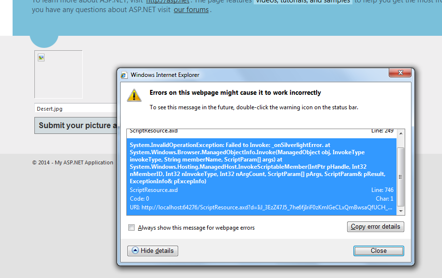 We have been using Rad Asycn Upload to upload the files to the server. The control is working with Chrome and FireFox and IE10. But as we switch to IE9 or Lower versions of Internet Explorer, the control no longer works. Please find the web site project created in reference to the problem that we are facing at our end. Also the screen snaps have been attached with the problem when the file is uploaded to the server on IE9 or IE8. Can anyone please help or guide me through the issue?