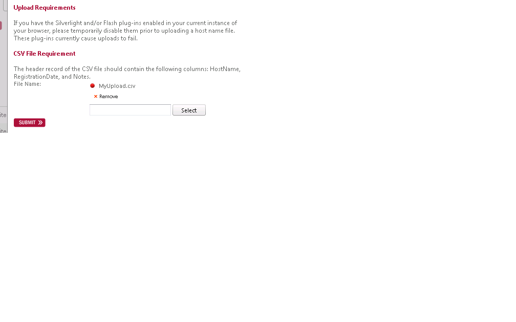 Browse and select the csv file. The upload indicator image turns red. See the attached image (withsvenabled.png).