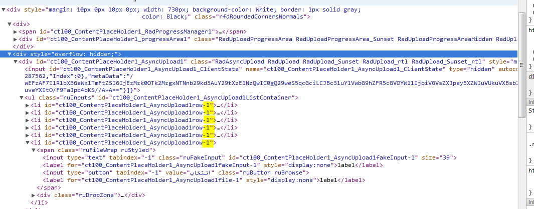 when i look that html page source code of my web form, i see that on the chrome all of <li> tags of AsyncUpload1ListContainer