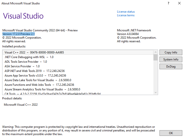 1. I uninstall vs 20202 preview 17.2 Preview 1.