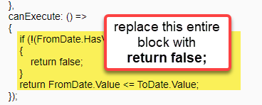 public class DashboardViewModel { public DashboardViewModel() { // You must call this here, OR use INotifyPropertyChanged InitiCommands(); } }Hi Daniel, I found an issue with CanExecute in MAUI. This is unrelated to Telerik UI for MAUI, and is something Microsoft has to fix (you can always verify such things by trying it with a normal Button instead of a RadButton).