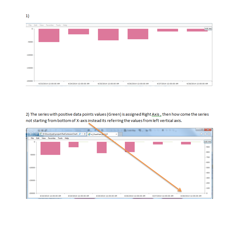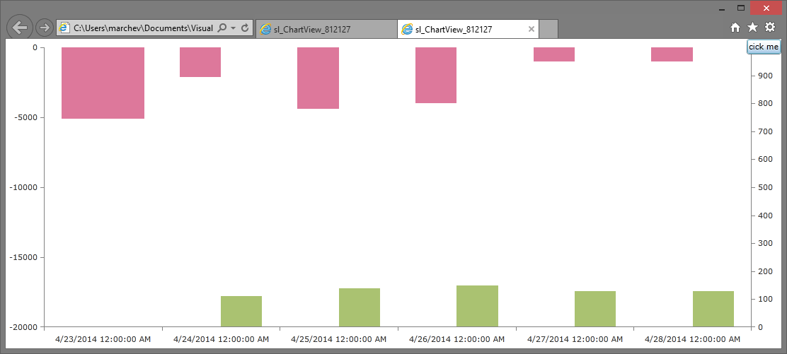 in showing two bar series with positive and negative values at one time? I have attached a snapshot to make it more clear.