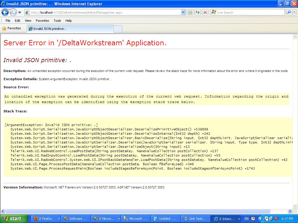 Stack Trace: at System.Web.Script.Serialization.JavaScriptObjectDeserializer.DeserializePrimitiveObject()