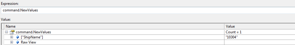 Hashtable newvalues= command.NewValues;