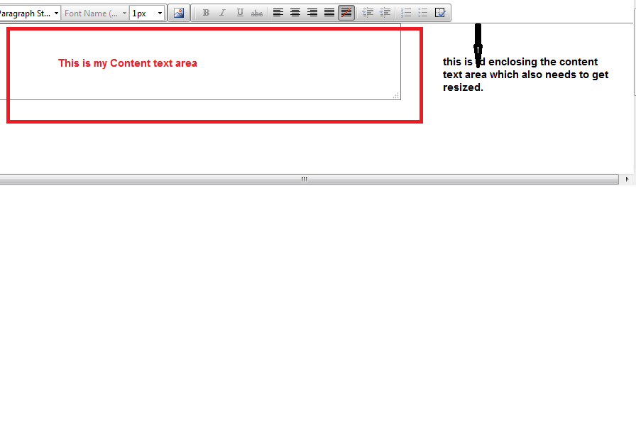 how to resize the content area (both iframe, div) and its parent element. kindly support on js files .