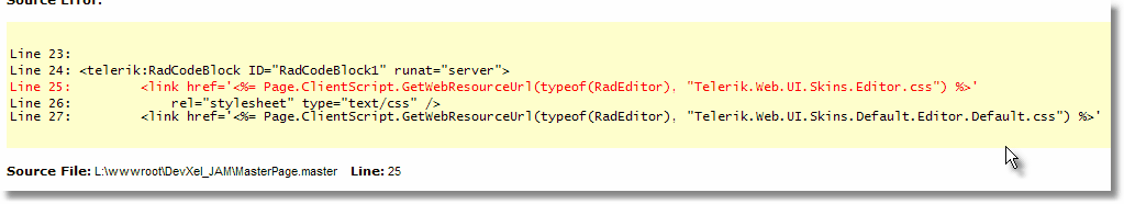 I tried the radcodeblock in both the master page <Head> and on the page but got the error:-