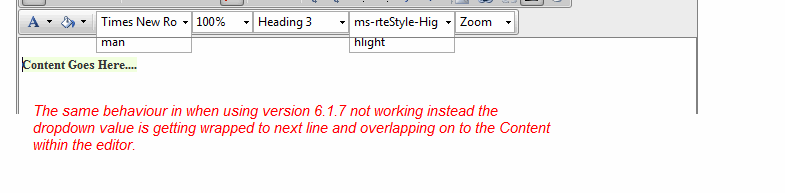 But especially with the dropdown values after formatting when the cursor is at the formatted text, If the dropdown (ex. Font Name) that is selected is wrapping on to the next line instead of truncating within the dropdown
