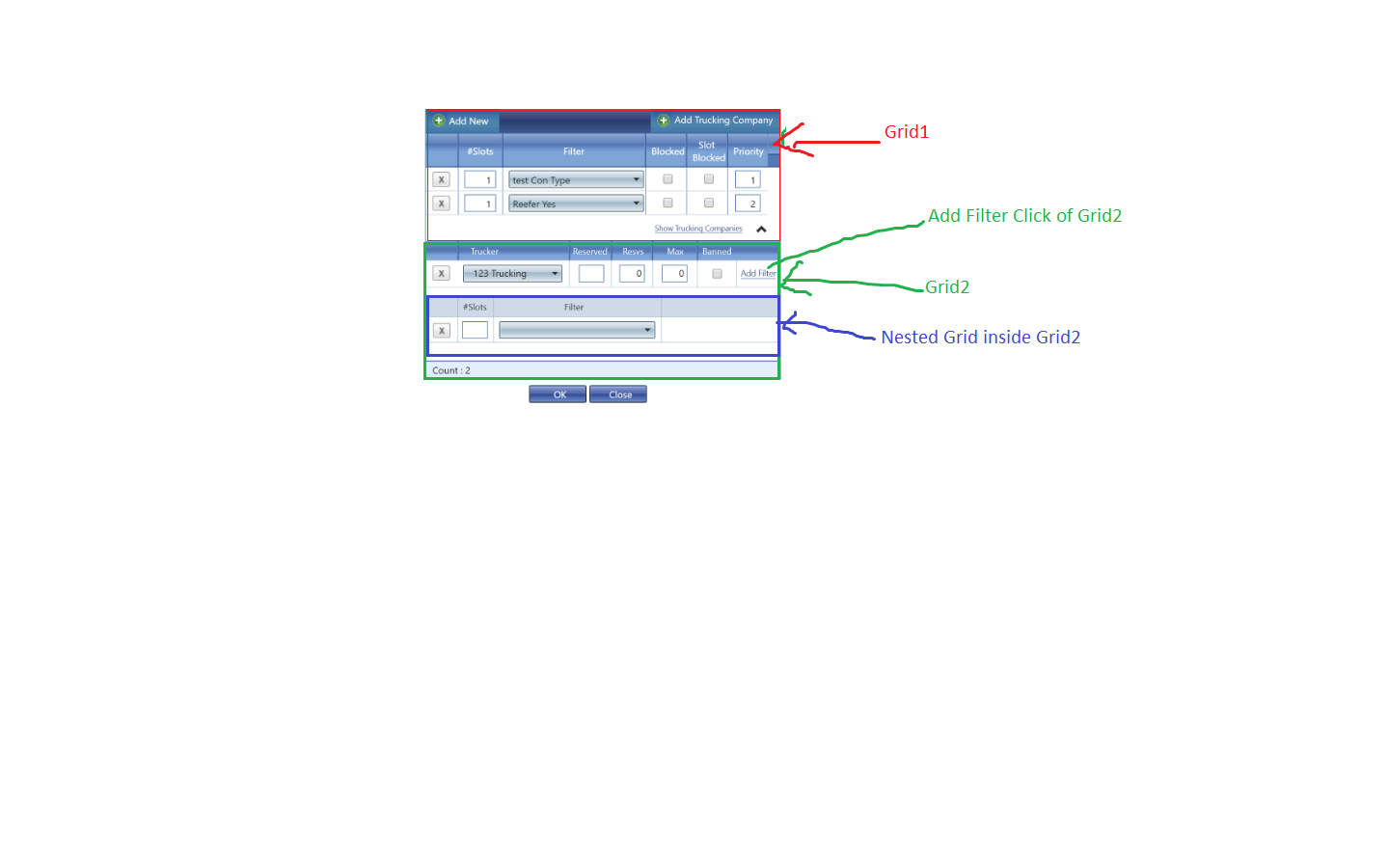 grdSlotFilterAllocation : nested grid(child)