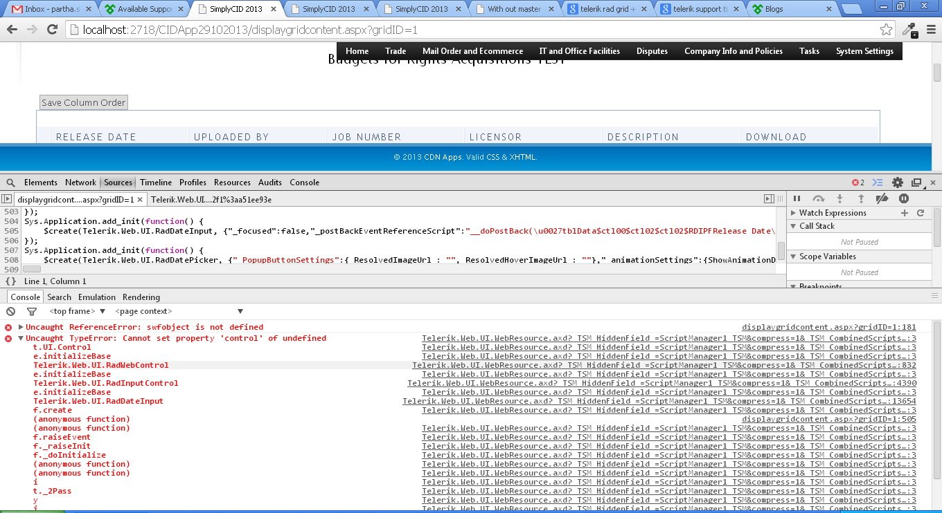 See attached , i have aspx, VB page along with the ERROR, also screen short after F12