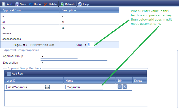 No my problem is that, when i press enter key on the screen, my second grid goes into edit mode automatically.