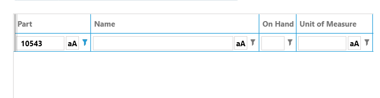 The strange behavior is that I can consistently filter on a particular part number (String) and everything works as expected (A single result in the grid), but another part number results in a blank grid after calling the Manager.Load() code.