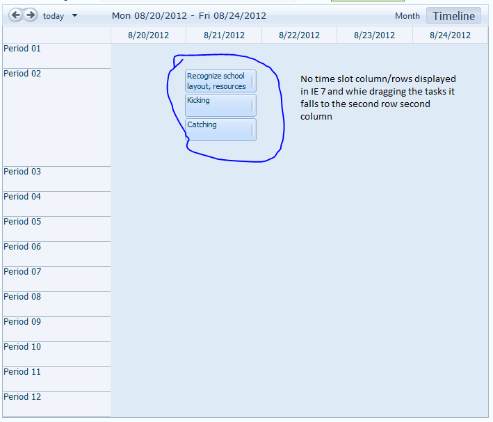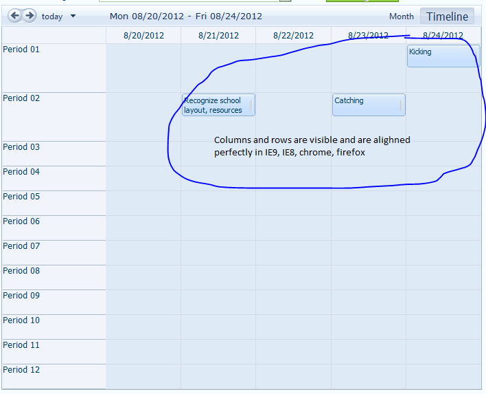 I am using Telerik rad scheduler for scheduling course time table for a week. It is working fine with any browser except IE7. The scheduler is working with IE8 and higher versions.