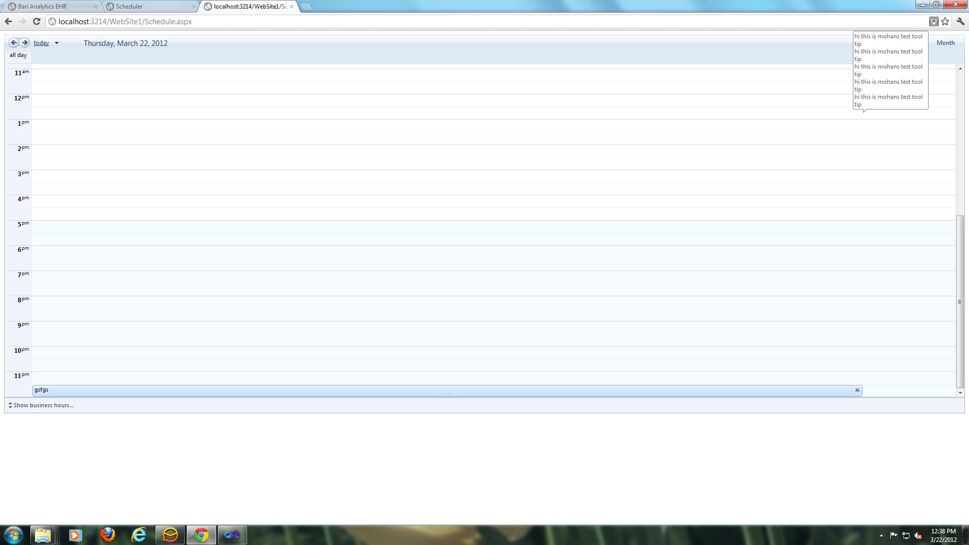 2. double click on 11:00 PM Slot and add new appointment and check the tool tip.