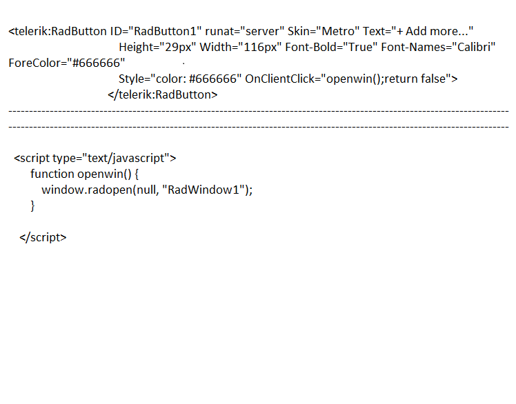 var oWnd = radopen("Dialog1.aspx", "RadWindow1");