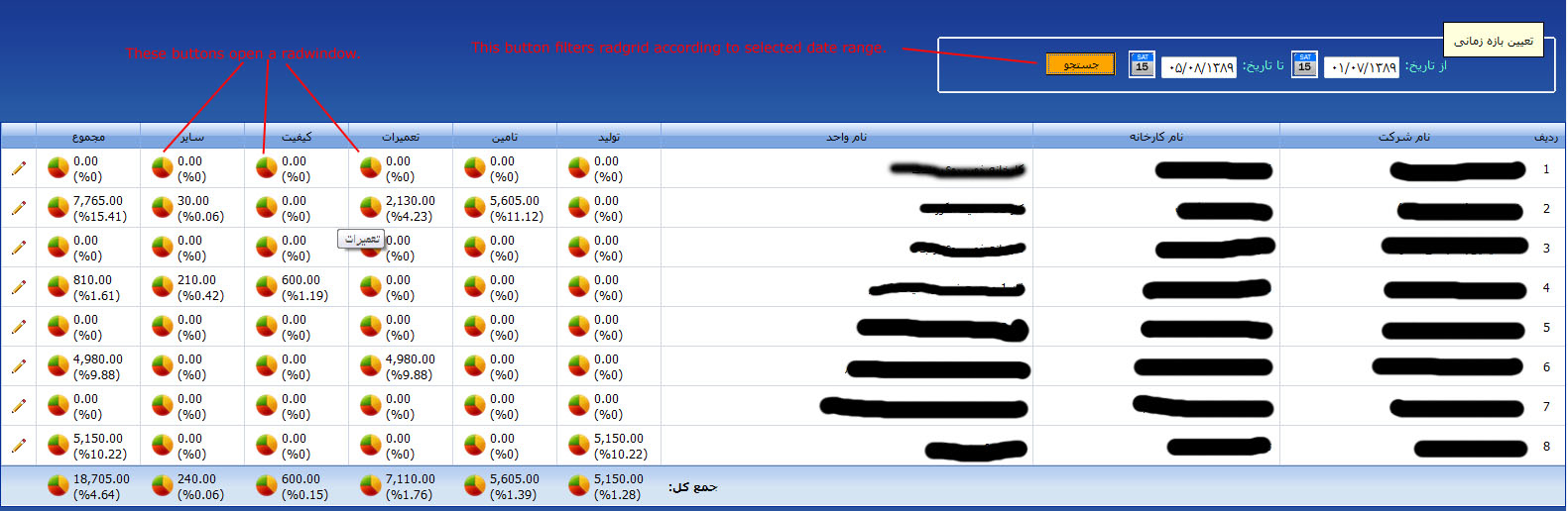 Every cells of radgrid contains a button that opens a radwindow that contains specific data according to the button was clicked.
