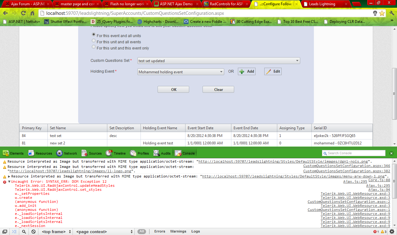 - Uncaught Error: SYNTAX_ERR: DOM Exception 12 Ajax.js:295