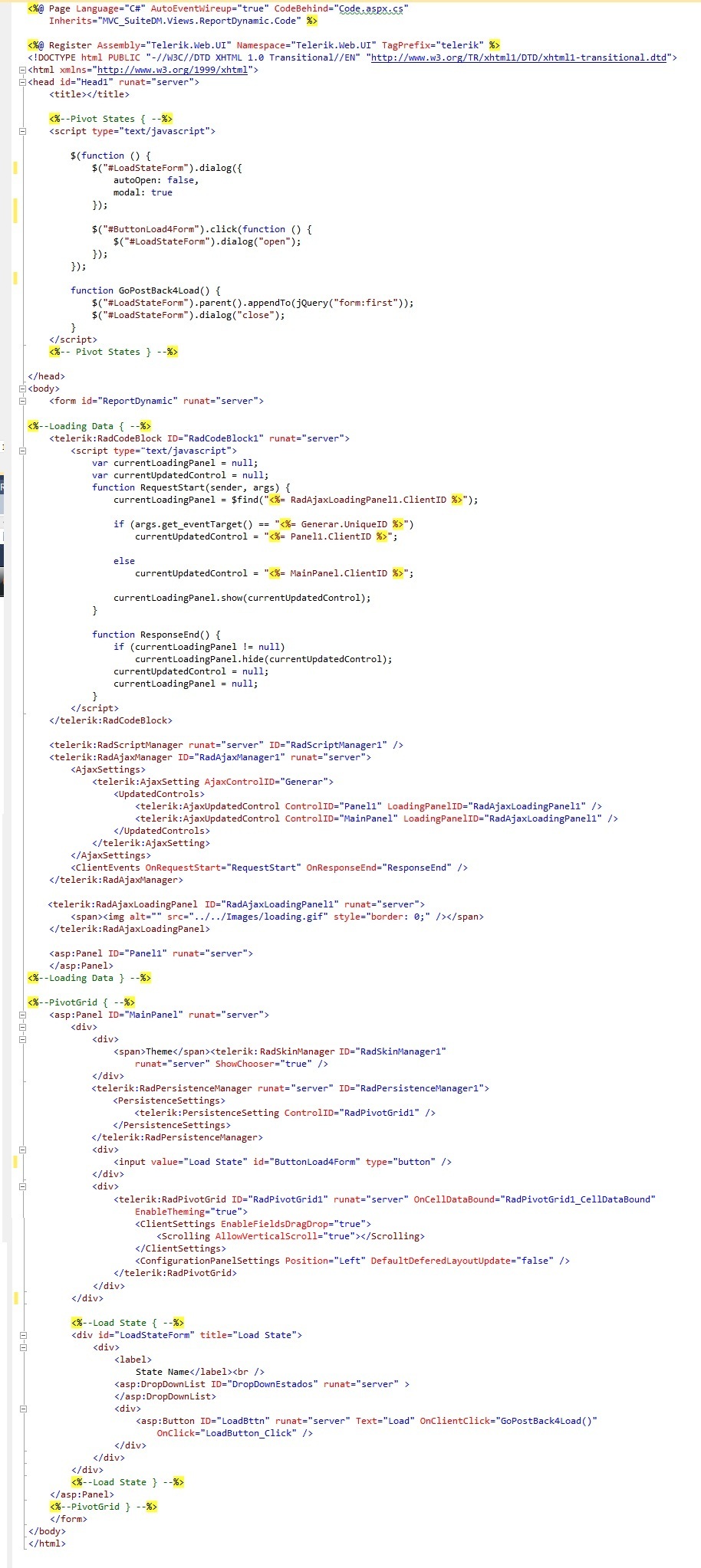 in the page, some jQuery modal dialog() to save pivogrid states. Since