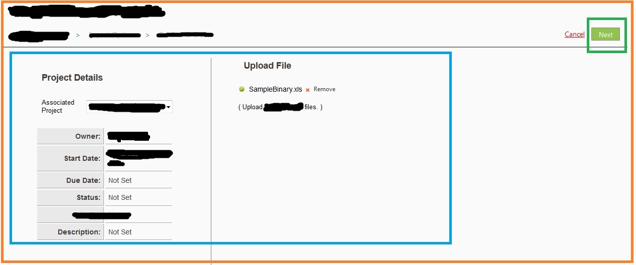 <div style="margin-top: 5px; padding-top: 10px;"> <telerik:RadAjaxManagerProxy ID="RadAjaxManagerProxy1" runat="server"> <AjaxSettings> <telerik:AjaxSetting AjaxControlID="ddlTBSelectProject"> <UpdatedControls> <telerik:AjaxUpdatedControl ControlID="divProjectInfo" LoadingPanelID="PanelProjects" /> </UpdatedControls> </telerik:AjaxSetting> </AjaxSettings> </telerik:RadAjaxManagerProxy> <table style="height: 350px;"> <tr> <telerik:RadAjaxLoadingPanel ID="PanelProjects" runat="server" Skin="Default"> </telerik:RadAjaxLoadingPanel> <td id="tdProjectDetails" style="border-right: 1px solid gray; width: 20%; padding-left: 50px; padding-right: 60px;"> <table> <tbody> <tr> <td colspan="2" style="padding-left: 10px; vertical-align: top;" class="DescriptionLabel">Project Details</td> </tr> <tr style="height: 20px;"></tr> <tr> <td style="padding-left: 10px; width: 36%;">Associated Project </td> <td> <asp:DropDownList ID="ddlTBSelectProject" OnSelectedIndexChanged="ddlTBSelectProject_SelectedIndexChanged" runat="server" AutoPostBack="true" Width="100%"> </asp:DropDownList> </td> </tr> <tr style="height: 15px;"></tr> <tr> <td colspan="2"> <div id="divProjectInfo" runat="server"> <table style="width: 100%"> <tbody> <tr> <td class="leftCell">Owner: </td> <td class="rightCell"> <span id="lblOwner" runat="server">--</span> </td> </tr> <tr> <td class="leftCell">Start Date: </td> <td class="rightCell"> <span id="lblStartDate" runat="server">--</span> </td> </tr> <tr> <td class="leftCell">Due Date: </td> <td class="rightCell"> <span id="lblDueDate" runat="server">--</span> </td> </tr> <tr> <td class="leftCell">Status: </td> <td class="rightCell"> <span id="lblStatus" runat="server">--</span> </td> </tr> <tr> <td class="leftCell">Priority: </td> <td class="rightCell"> <span id="lblPriority" runat="server">--</span> </td> </tr> <tr> <td class="leftCell">Description: </td> <td class="rightCell"> <label id="taDescription" runat="server" aria-multiline="true"></label> </td> </tr> </tbody> </table> </div> </td> </tr> <tr style="height: 15px;"></tr> </tbody> </table> </td> <%-- <telerik:RadAjaxLoadingPanel ID="pnlUpload" runat="server">--%> <td id="tdFileUpload" style="width: 40%; padding-left: 40px; padding-right: 60px; vertical-align: top;"> <table> <tbody> <tr style=""> <td colspan="2" style="padding-left: 10px; vertical-align: middle;" class="DescriptionLabel">Upload File</td> </tr> <tr style="height: 10px;"></tr> <tr> <td> <div id="divReloadFile" runat="server" visible="false"> <span id="spnFileName" runat="server"></span> <input id="btnRemoveReloadedFile" type="button" runat="server" alue="Remove" onclick="btnRemoveReloadedFileClick();"> </div> </td> </tr> <tr id="trfileupload" runat="server"> <td> <telerik:RadAsyncUpload ID="RadAsyncFileUpload" runat="server" MaxFileSize="2097152" AllowedFileExtensions="xls,xlsx,csv" Localization-Select="Upload" MaxFileInputsCount="1"></telerik:RadAsyncUpload> <asp:Button ID="btnsubmitupload" runat="server" Visible="false" /> </td> </tr> <tr id="trfileuploadinfo" runat="server"> <td> <span>( Upload XLSX or CSV files. )</span> </td> </tr> <tr style="display: none;"> <td> <div id="Uploader" class="Uploader" onclick="TriggerFileClick()"> <input id="FileUpload" style="visibility: hidden; position: fixed; top: -100px" type="file" name="files[]" multiple accept=".csv,.xls,.xlsx"> <span id="fileSelected" class="Uploadertxt">Click or drag to <br /> upload XLSX or <br /> CSV files</span> </div> </td> </tr> <tr style="height: 20px;"></tr> <tr> <td> <table id="tblFileUploaded" style="background-color: lightgray; display: none;"> <tr> <td> <span id="filename" style=""></span> </td> <td> <span id="removeFile" onclick="removeFiles();" style="cursor: pointer; display: none;"> <img class="manImg" src="images/cancel_box_button.png" /> </span> </td> </tr> </table> </td> </tr> </tbody> </table> </td> <%-- </telerik:RadAjaxLoadingPanel>--%> </tr> </table> <asp:HiddenField ID="hdn_enableNext" runat="server" Value="0" /></div>Regards,