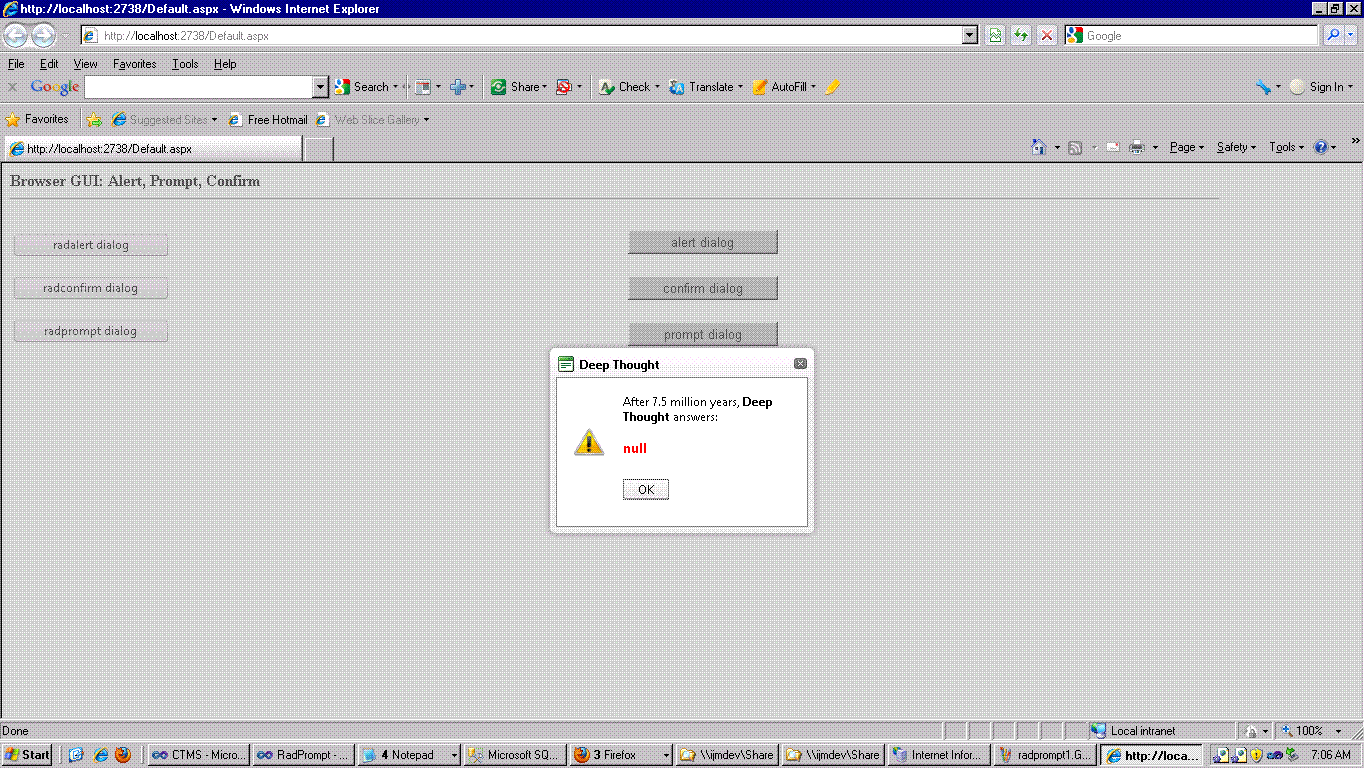 radalert("After 7.5 million years, <strong>Deep Thought</strong> answers:<h3 style='color: #ff0000;'>" + arg + "</h3>", null, null, "Deep Thought");
