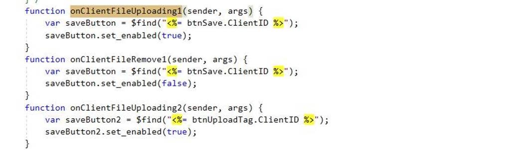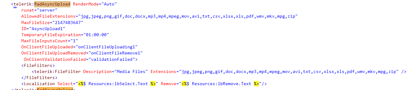 <telerik:RadAsyncUpload ID="radAsyncUpload" CssClass="hide4print" runat="server" MaxFileInputsCount="10" InitialFileInputsCount="1" MultipleFileSelection="Automatic" OnValidatingFile="RadAsyncUpload_ValidatingFile" />