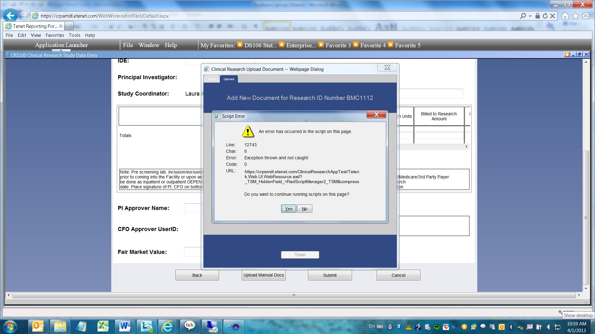 I'm attaching a screen print of another error I'm receiving when trying to use "\\TENHDCMTERPW1\inetpub\wwwroot\PLDR\Test\ClinicalResearchApp\UploadedFiles" for my temporary folder.