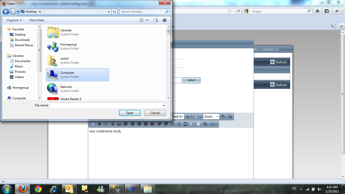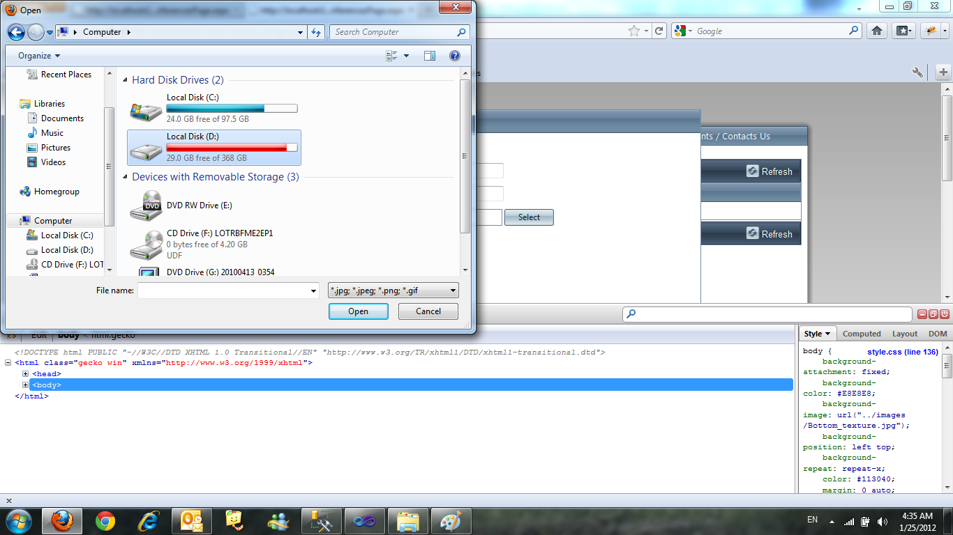 hi i have RadGrid, popup edit form template within this template i have a RadAsyncUpload which acts crazy with Mozilla Firefox, what is happening is "sometimes" when clicking the select button a dialog box opened and i select a file but nothing happens the select button still displayed and there is the extension thing, sometimes the opened dialog box provides me with the allowed extensions and sometimes not
