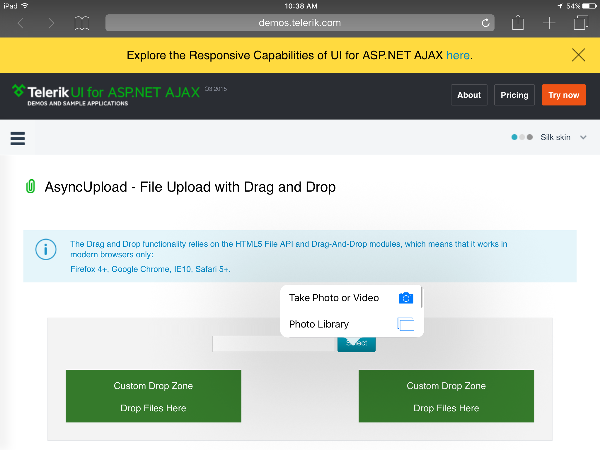 My question is: are images the only filetype that can be uploaded with iOS devices with the RadAsyncUpload control? If not, how can I set it so I can upload PDF/doc/etc?